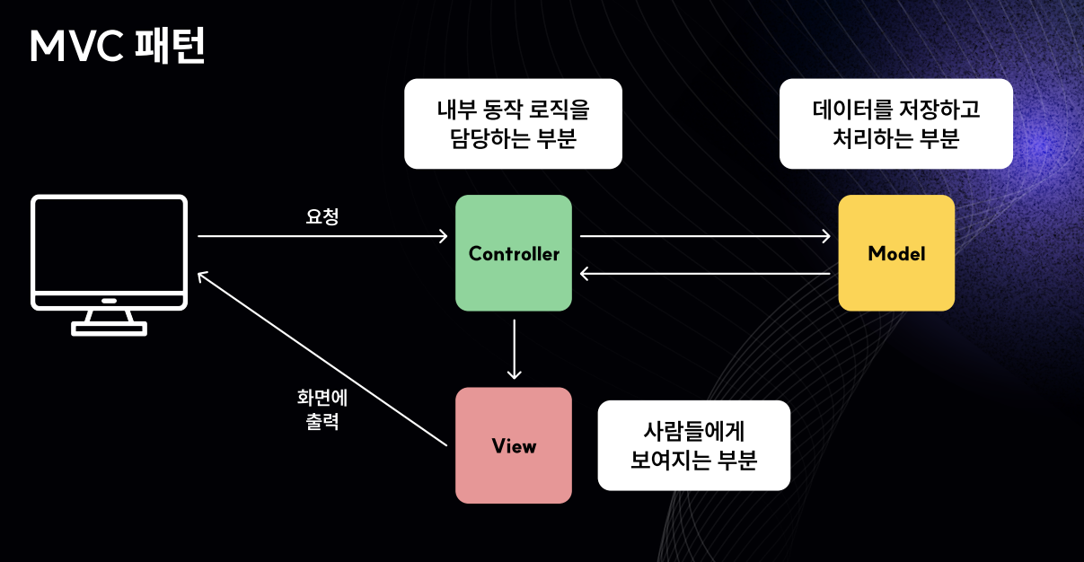 - 개발 영역을 Model, View, Controller로 역할을 분리하는 디자인 패턴
