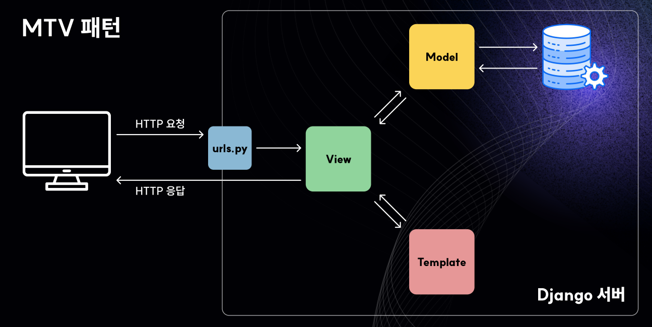 - view에서 요청(request)를 받고 응답(response)를 보낸다