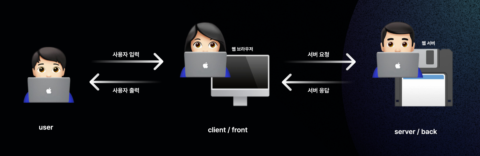 - user/client/server 간의 상호작용